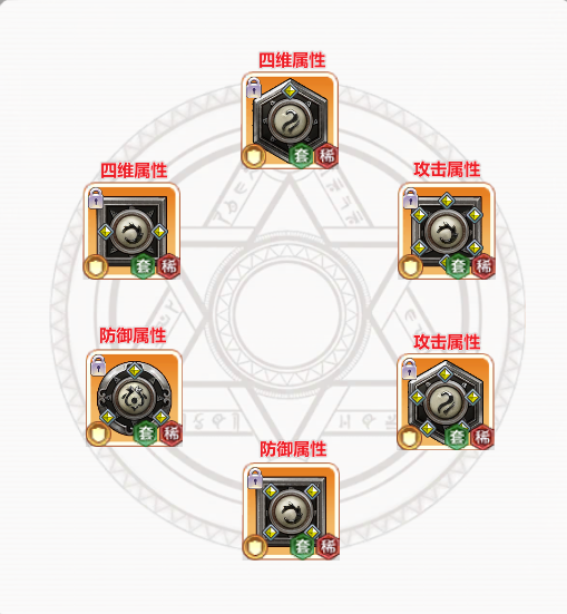 属性选择根据符文位置,选择正确的主属性类型。 符文位置决定了其主属性的倾向:推荐选择2个攻击位符文、2个防御位符文(生命、体质、防御)、2个四维位符文(力量、智力、敏捷)。