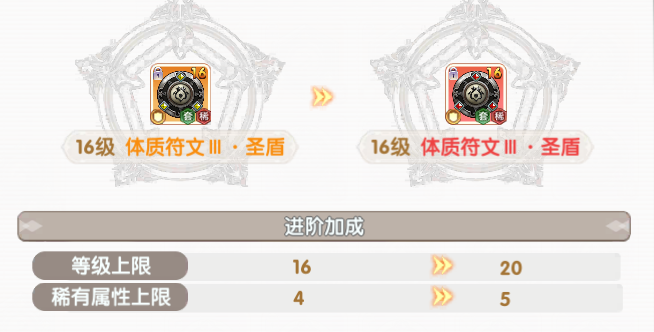 升阶普通橙色符文可升阶至红色品质符文,套装橙色符文还可继续升阶。