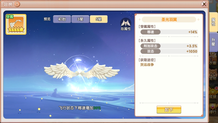 新增内容1. 新增PK玩法“货运战争”,服务器开启45日且玩家满足50级后开启,详细规则请游戏内阅读玩法介绍了解; ![]() 2. 新增“翅膀-圣光羽翼”,可在“货运战争”玩法中获得。 ![]() ![]()