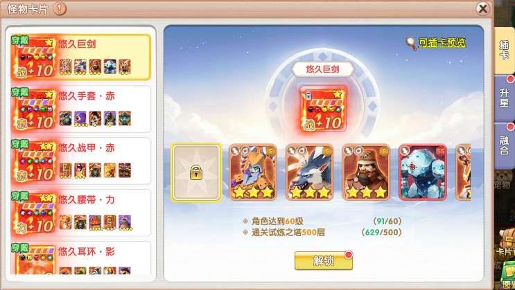 2. 新增“额外卡牌位”,开服80日后开启“武器”额外卡牌解锁,之后每件装备随时间逐步开启解锁,解锁需要满足前置条件;