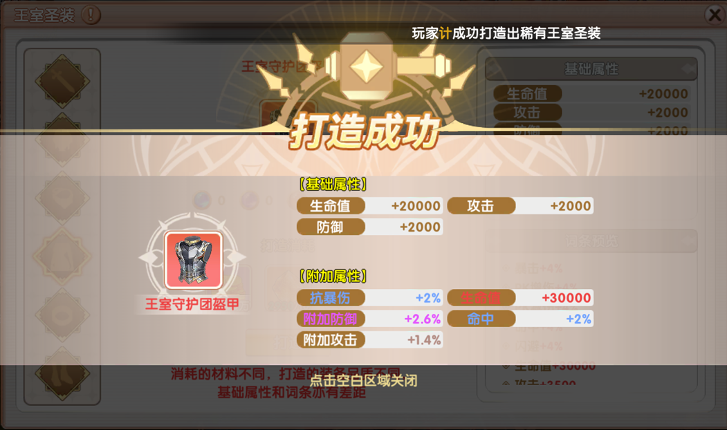 2. 新增新培养内容“王室圣装”,玩家达到80级,服务器时间120日后开放,与“装备”系统平行,具备特殊共鸣属性,详情参照游戏内说明。
